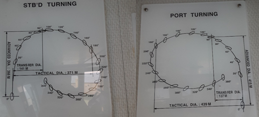 STARBOARD SIDE TURNING CIRCLE AND PORT SIDE TURNING CIRCLE ARE DIFFERENT BECAUSE OF TRANSVERSE THRUST.