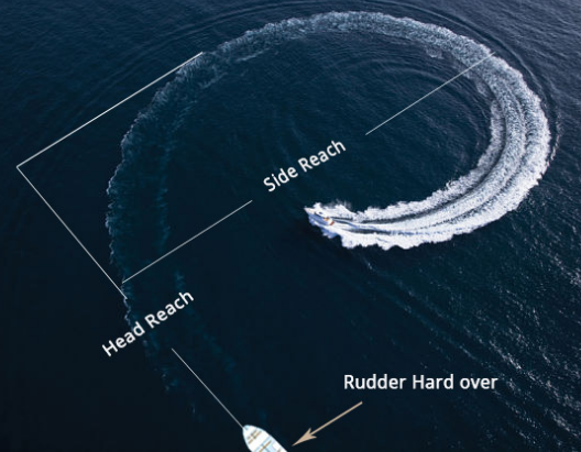 ⦁ THE VESSEL WITH A RIGHT-HAND TURN PROPELLER, IF MAKING A TURN TO PORT, WILL END UP WITH A SMALLER DIAMETER THAN STARBOARD DUE TO THE EFFECT OF TRANSVERSE THRUST