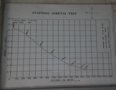 SAILING DISTANCE TO STOP DURING STOPPING INERTIA TEST OPERATION - 1949METRES