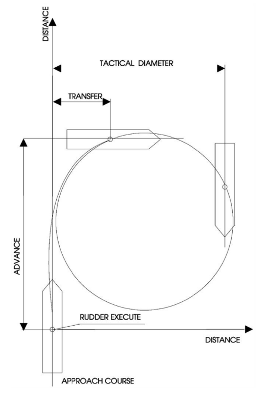 TACTICAL DIAMETER– IS DEFINED BY THE GREATEST DIAMETER SCRIBED BY THE VESSEL FROM COMMENCING THE TURN TO COMPLETING THE TURN.