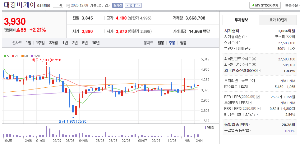 먼저 태경비케이라는 이름이 생소한 분들이 계실텐데, 이전 이름은 백광소재였다. 구제역, 아프리카 돼지 열병 등등이 발생하면 방역을 담당하는 백광소재가 테마주로 급등을 하곤 했었다.