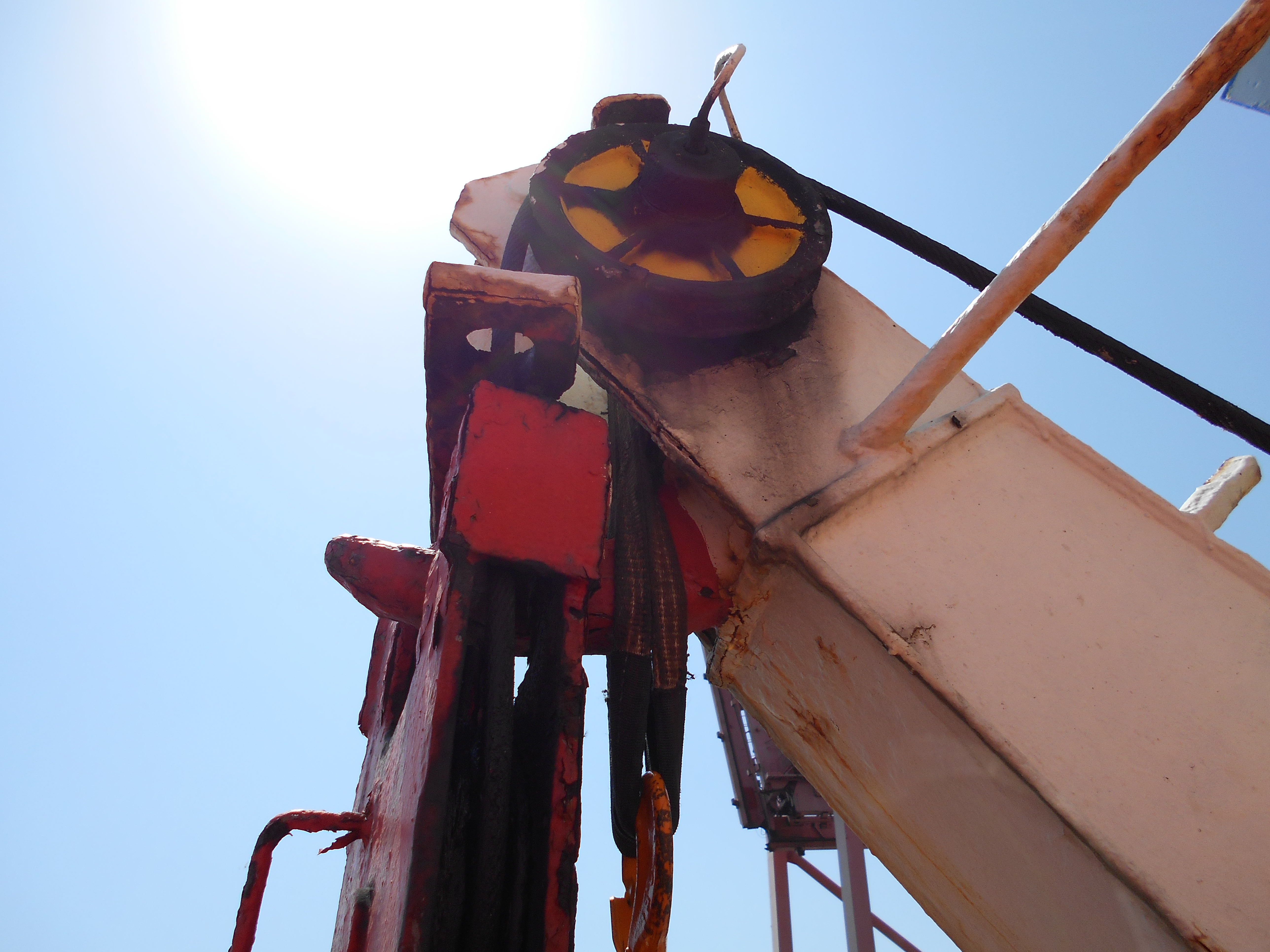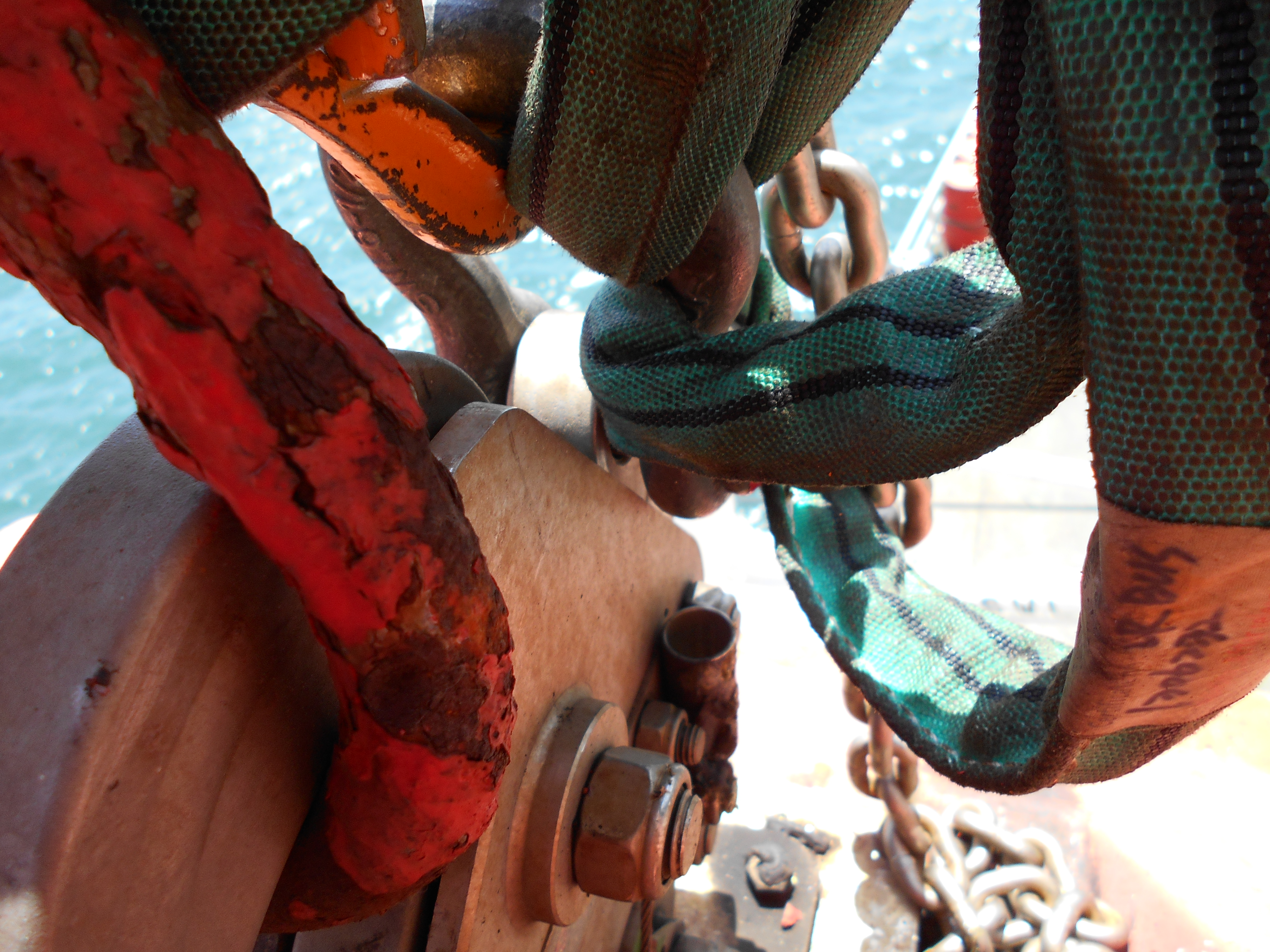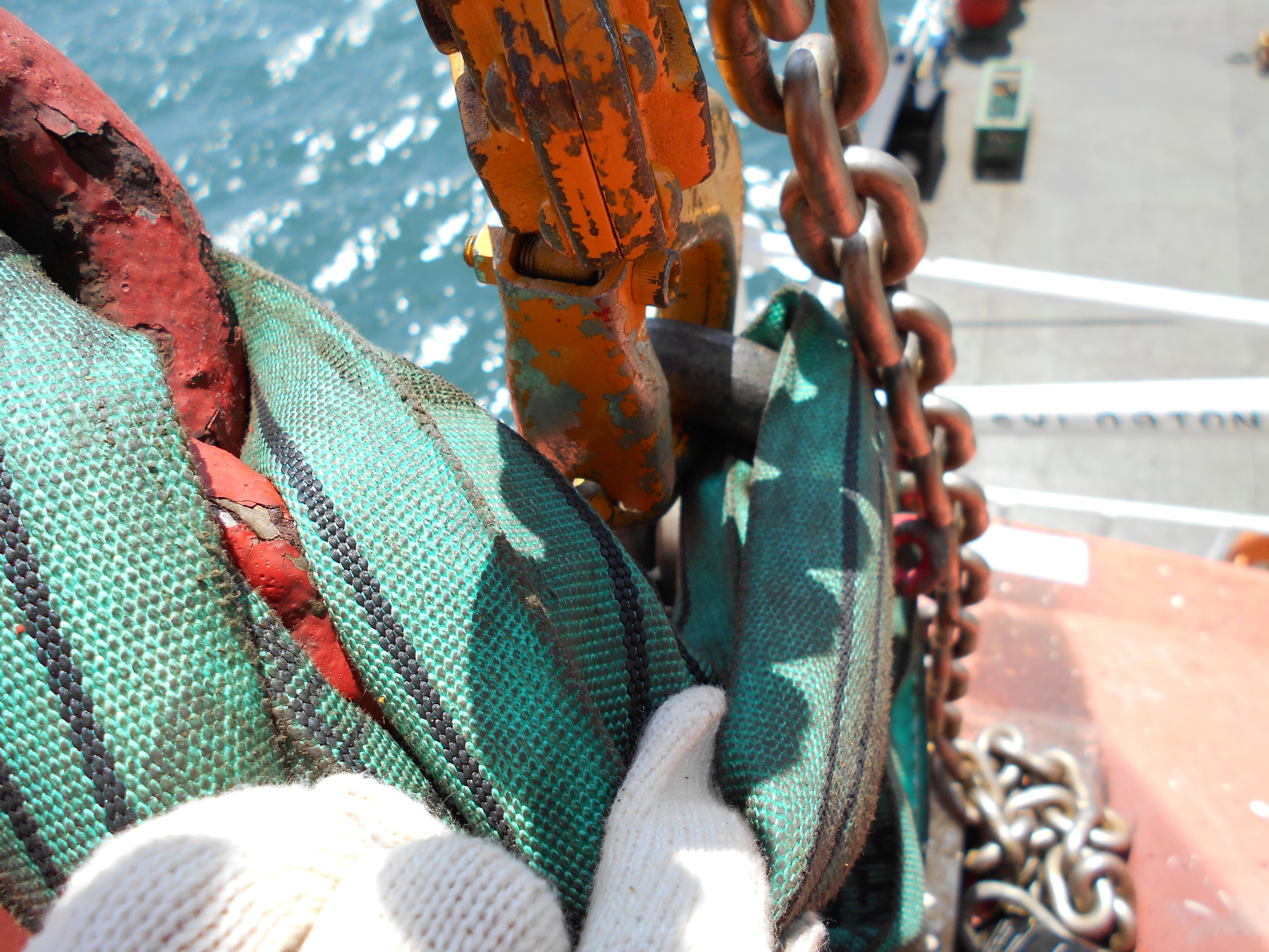 2) 체인블럭을 연결하여 보트를 데비트에 고정.