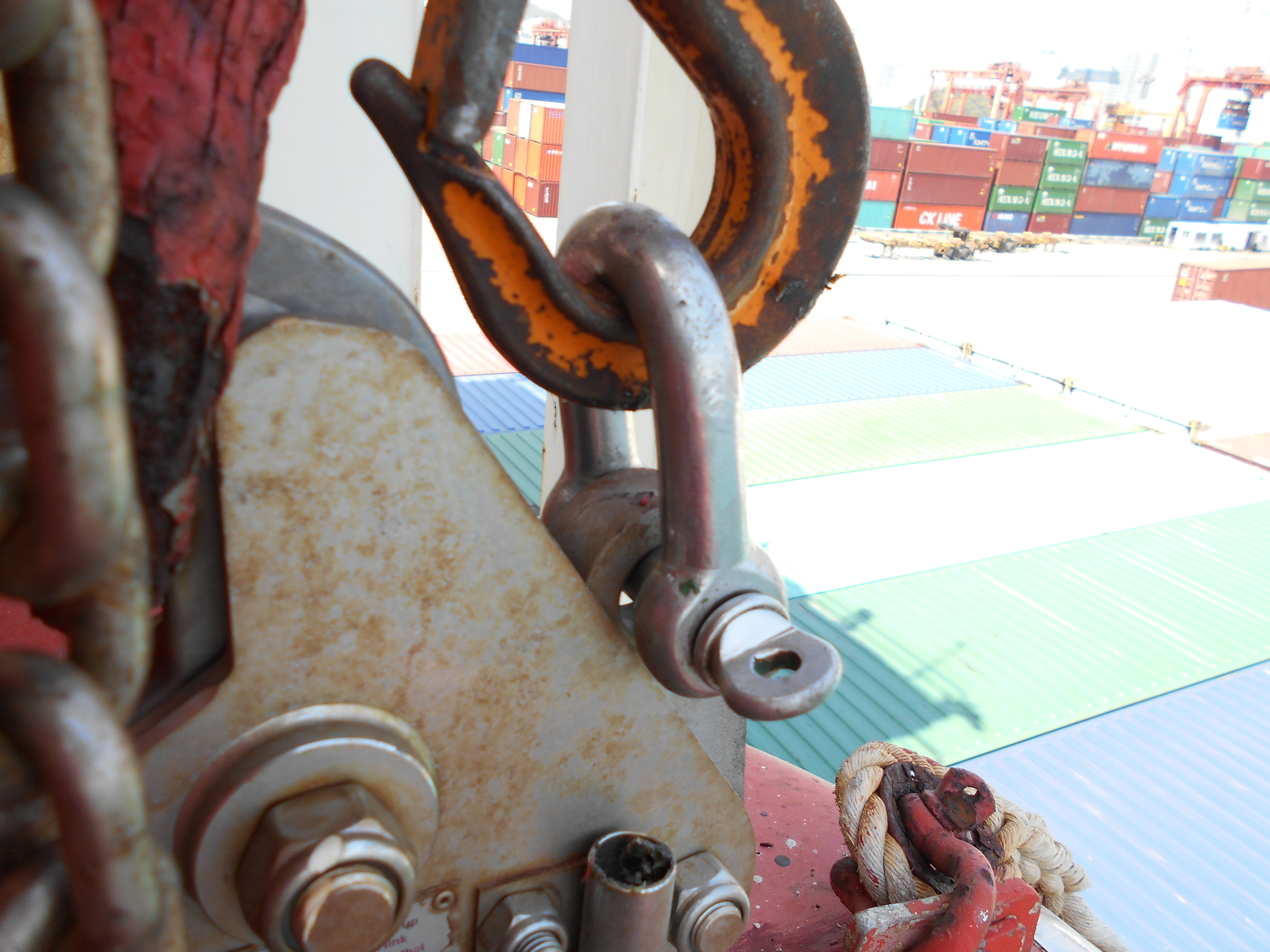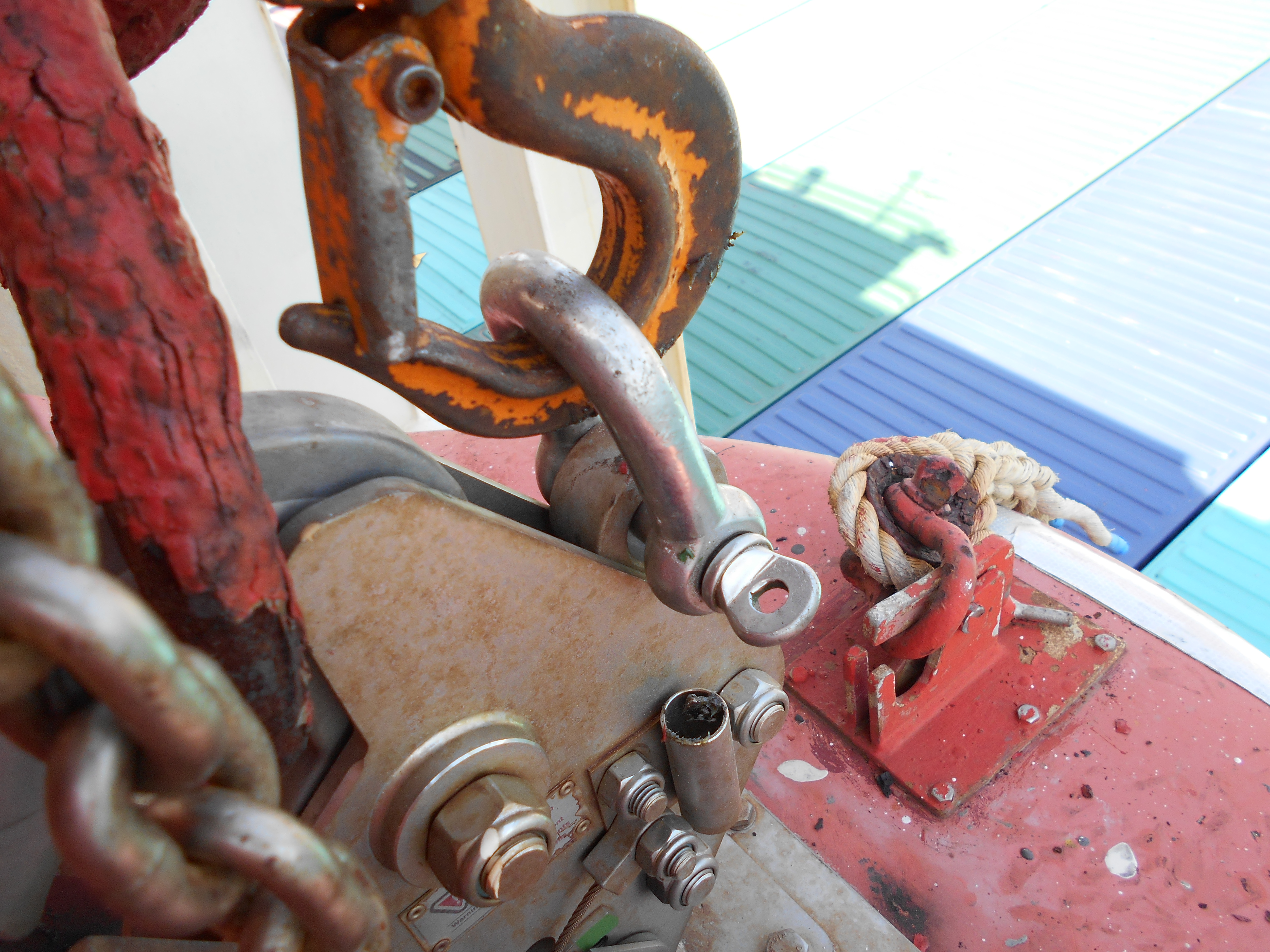 2. Condition: Lifeboat breakaway Chain link is severely corroded.