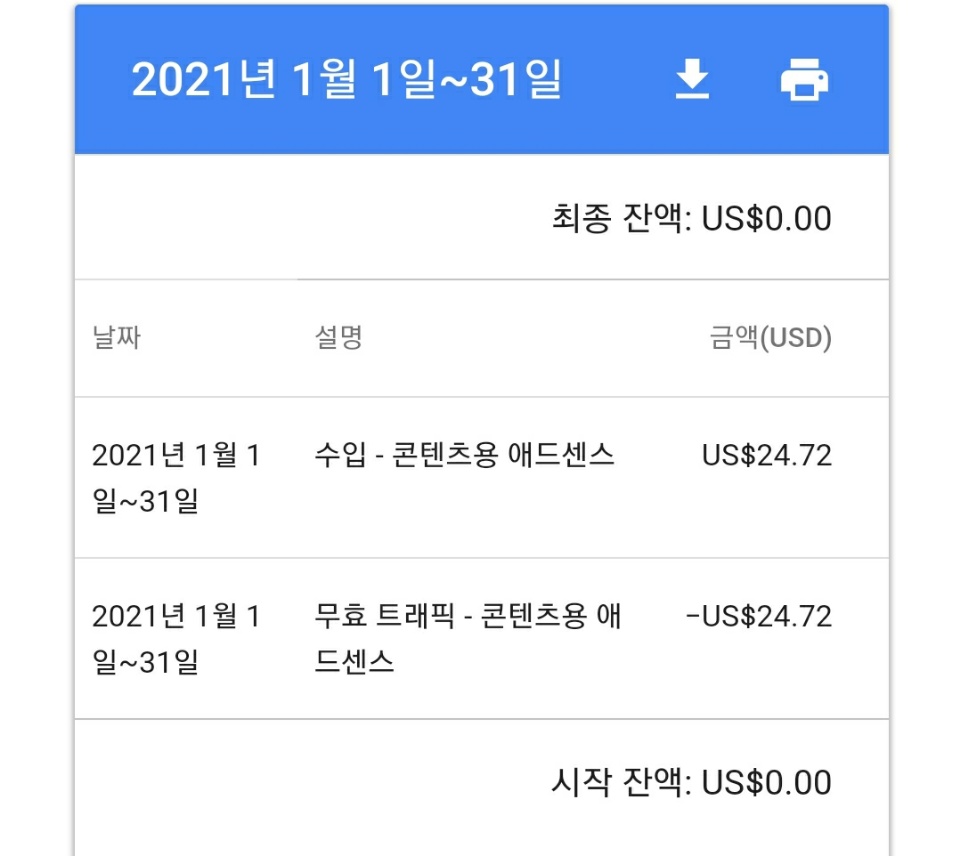 지금까지 적립된 모든 수익이 무효트래픽으로 날아갔다.ㅠ.ㅠ