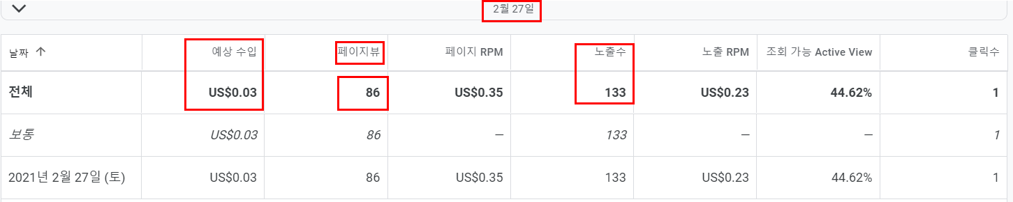 실제는 100불이 넘었었다. 지인 찬스를 이용한 광고 클릭 30번으로 하루 수익 90$을 달성했었기 때문이다. 구글 역시 똑똑해~~ 절대로 절대로 지인들에게 광고를 눌러달라 이야기 하지 마세요~~ 구글 무효트래픽을 걸러내는 시스템이 얼마나 어마무시한지~~ 조심 또 조심하셔야 합니다~