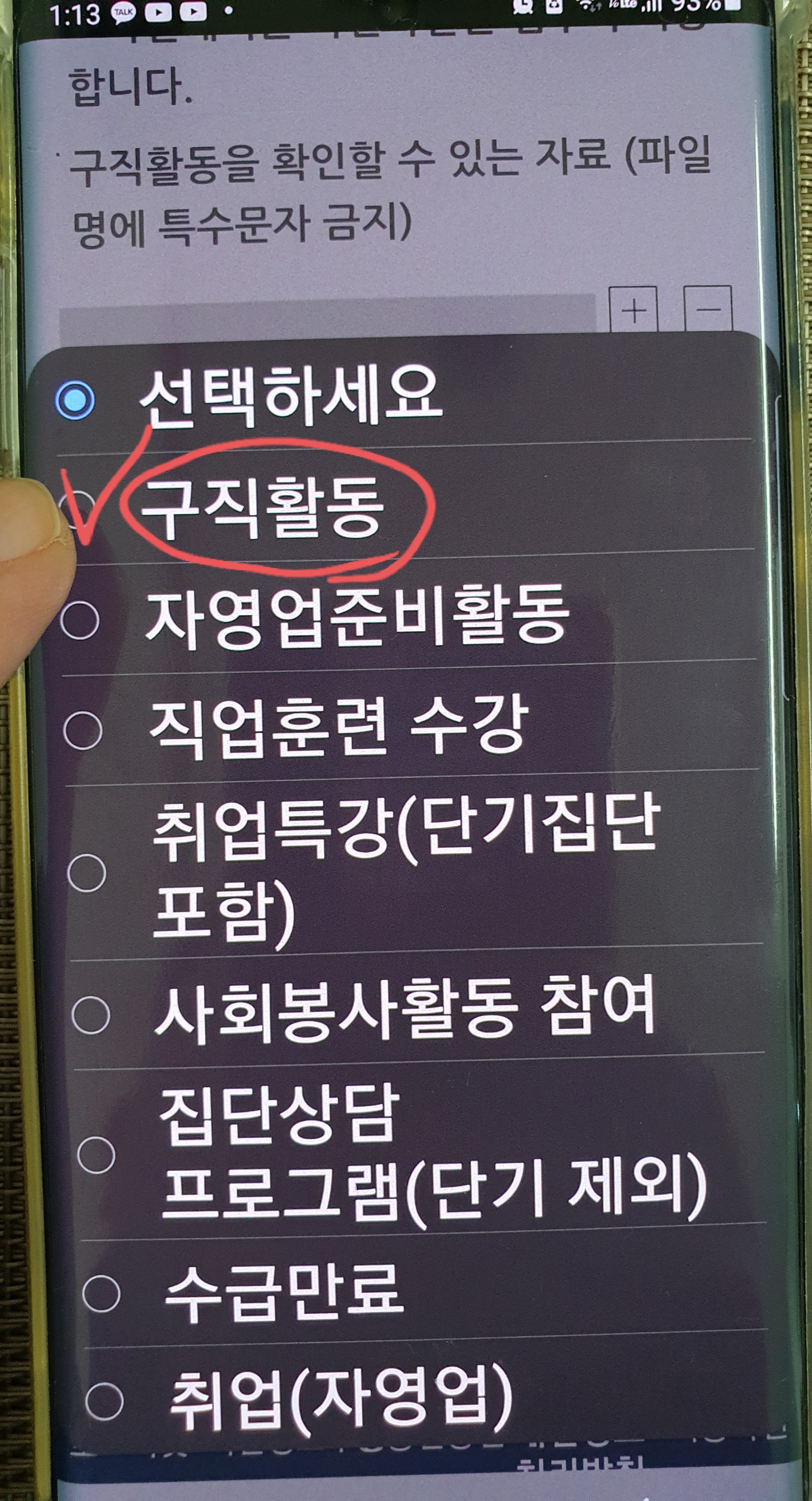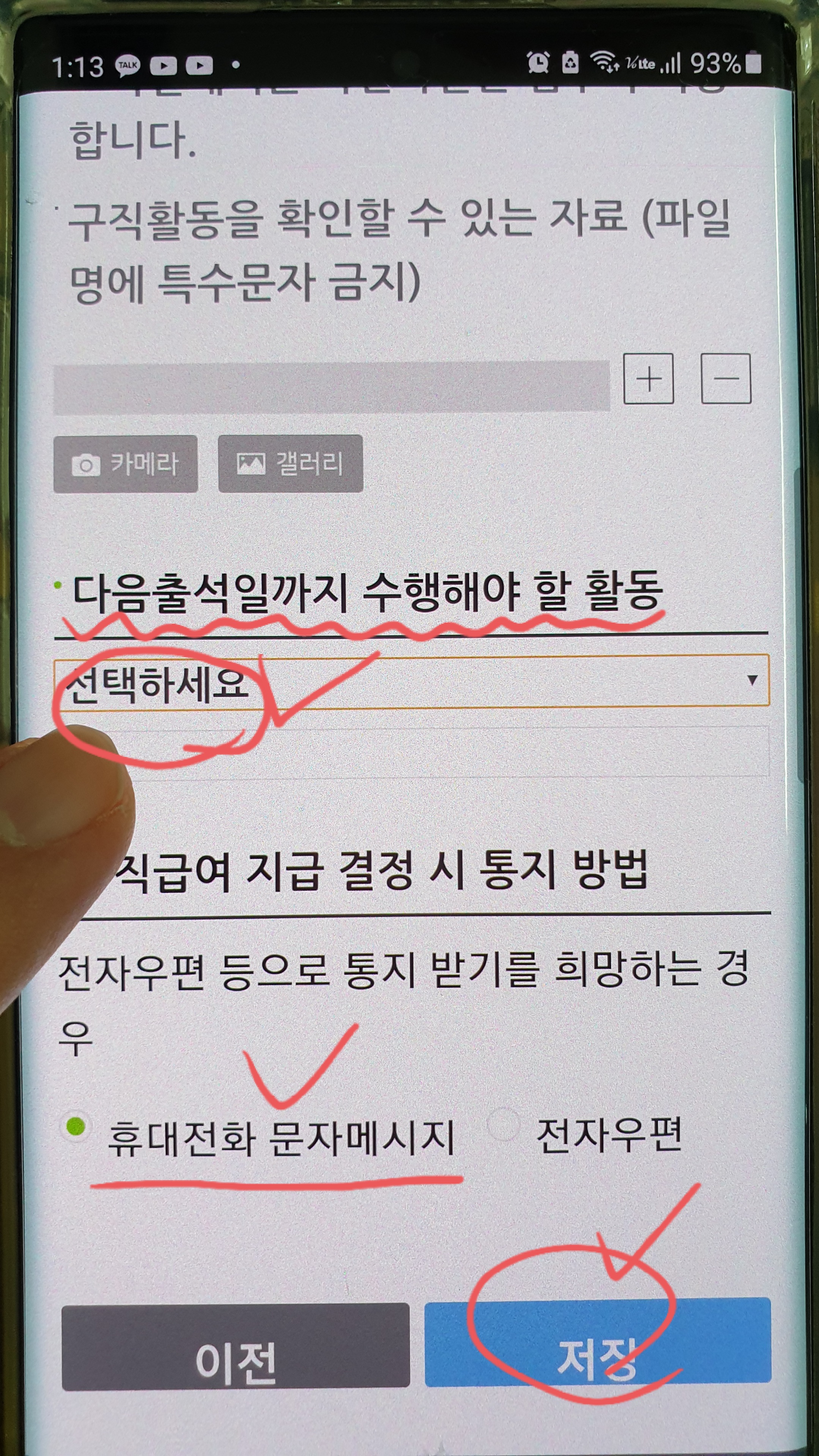 다음출석일까지 해야할 행동에 구직활동으로 선택후 저장을 눌러주세요~