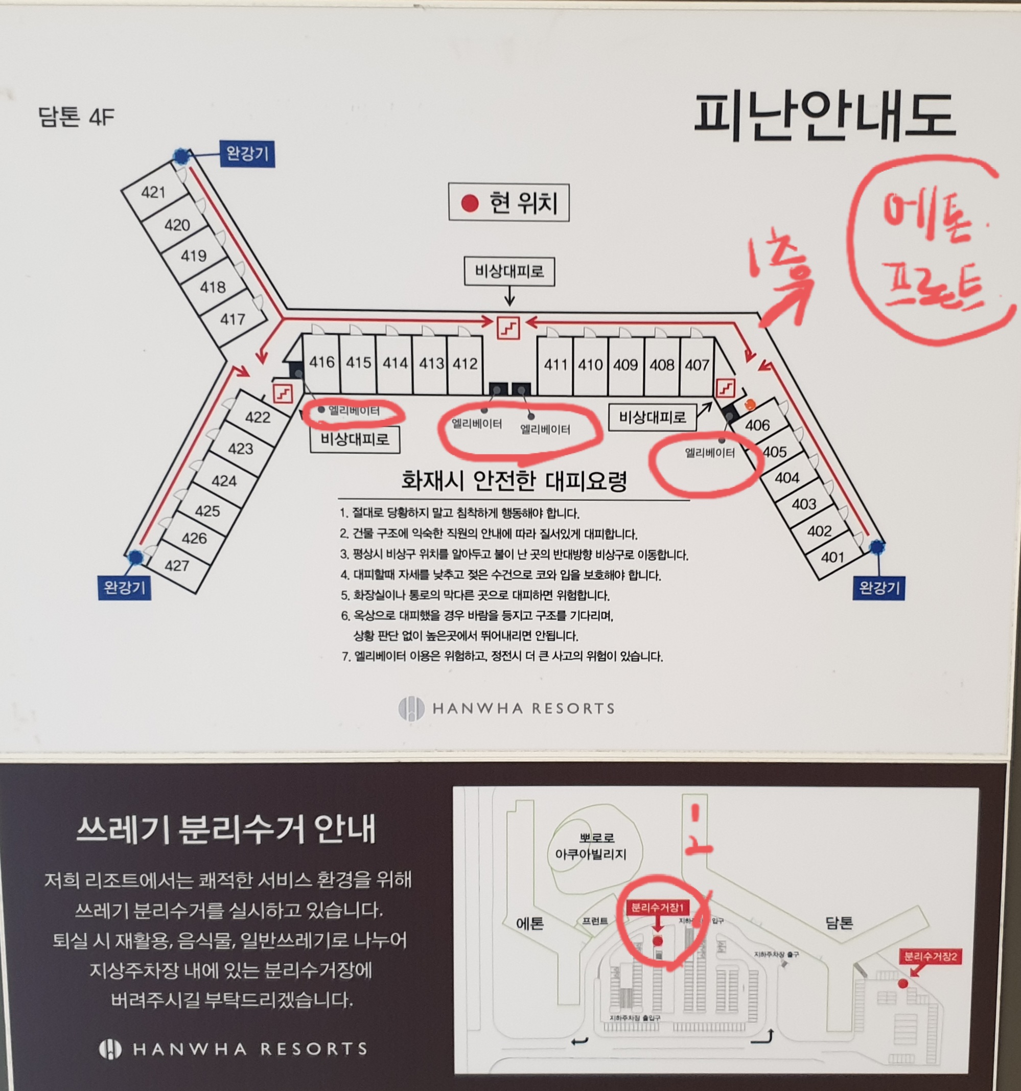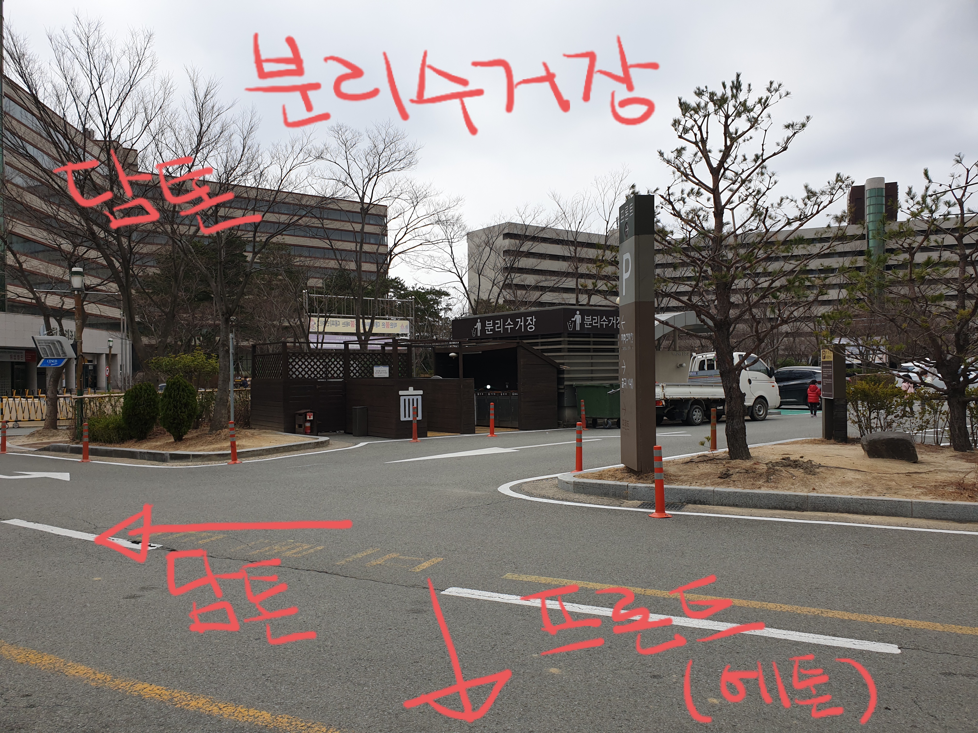 분리수거장 위치는 신관 프론트 앞 주차장에 있다.