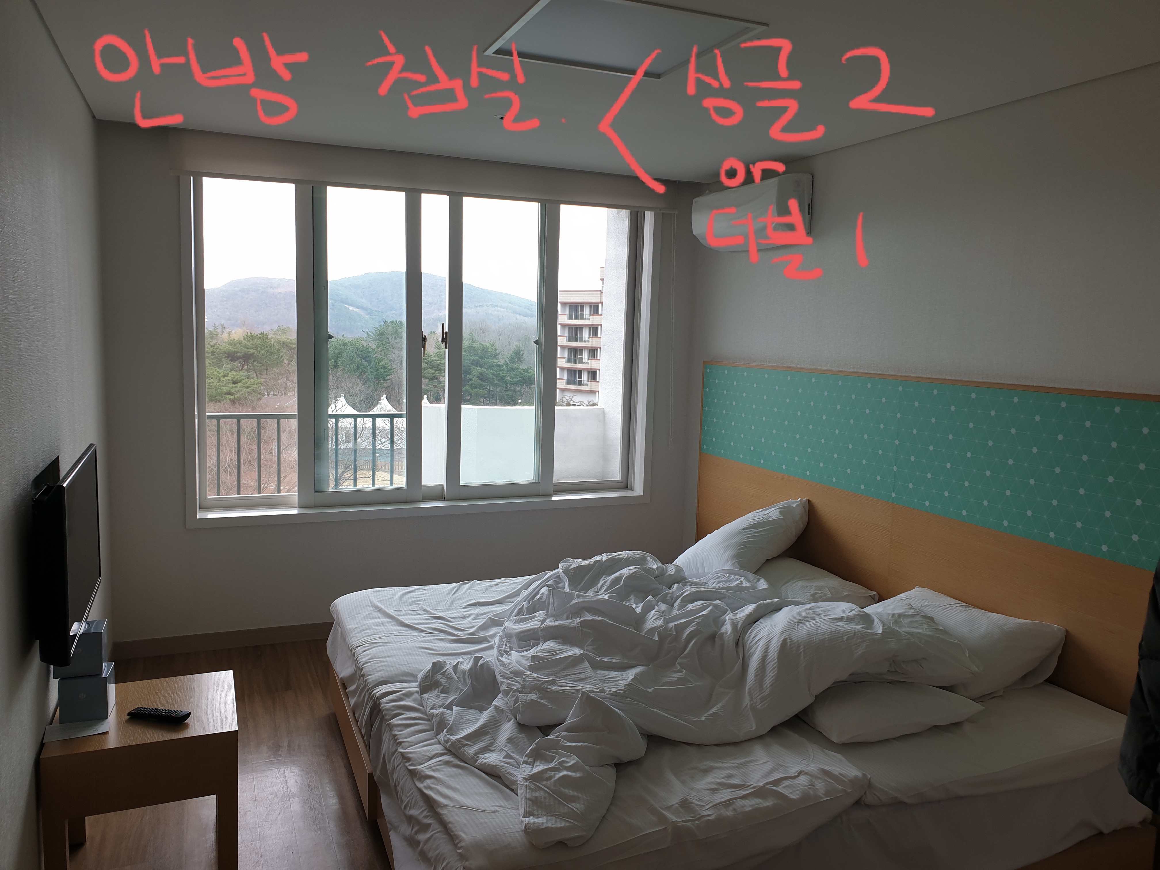 체크인시~침대를 싱글2개 또는 더블로 선택할수 있었는데,