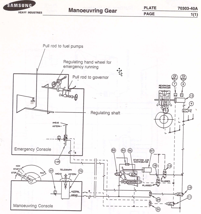 2) REVERSING V/V(105)의 LOVKING을 풀고 현재 M/E 운전방향(AHEAD/ASTERN)에 일치 시킨다.
