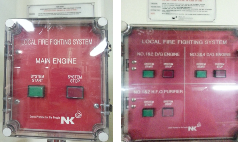 수동 작동을 시킬수 있는 곳은 A-DECK FIRE CONTROL STATION과 PUMP UNIT이 있는 S/G RM, 그리고 각 기기 근처에 있는 LOCAL RELEASE BOX다.