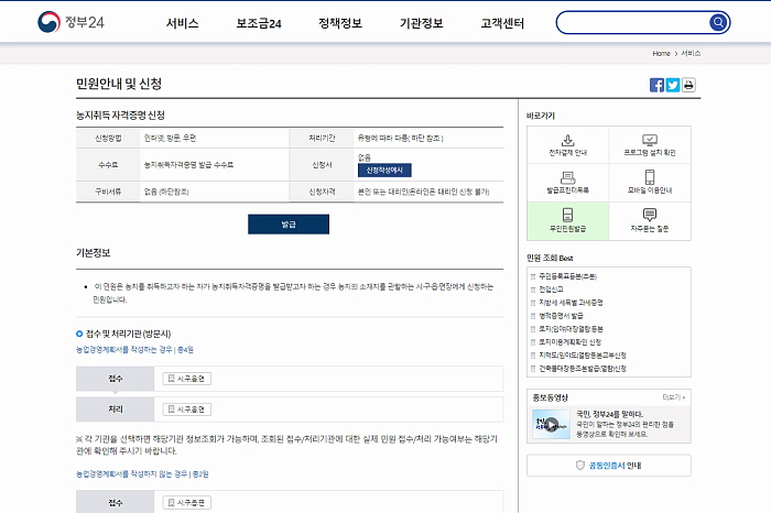 인터넷으로 신청하는 것은 간단한데요. 정부24 홈페이지로 가서 농지취득자격증명을 입력해서 농업경영계획서에 농지를 경영목적으로 신청할 때 첨부해서 신청하시면 됩니다. 하지만 인터넷으로 신청하려면 본인의 인증서가 필수입니다. 인적사항들을 적어서 취득자 구분에 농업인, 신규영농, 법인, 주말체험영농 중에 하나를 택해서 고르시면 됩니다. 취득원인에는 매매인지 증여, 교환 등을 입력하면 되고, 취득한 농지에 주소와 지번, 지목, 면적 등을 자세히 입력해서 신청하시면 됩니다.