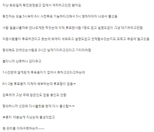 아래 사진들은 여러 온라인에서 돌고있는 사전투표소, 사전투표함의 사진들이다. 나의 소중한 한표, 소중히 다뤄져야 할 권리인 참정권이 이렇게 소홀히 다뤄지고 있는 현실에 또다시 부정선거, 부정투표의 의혹만 키울 뿐이다.