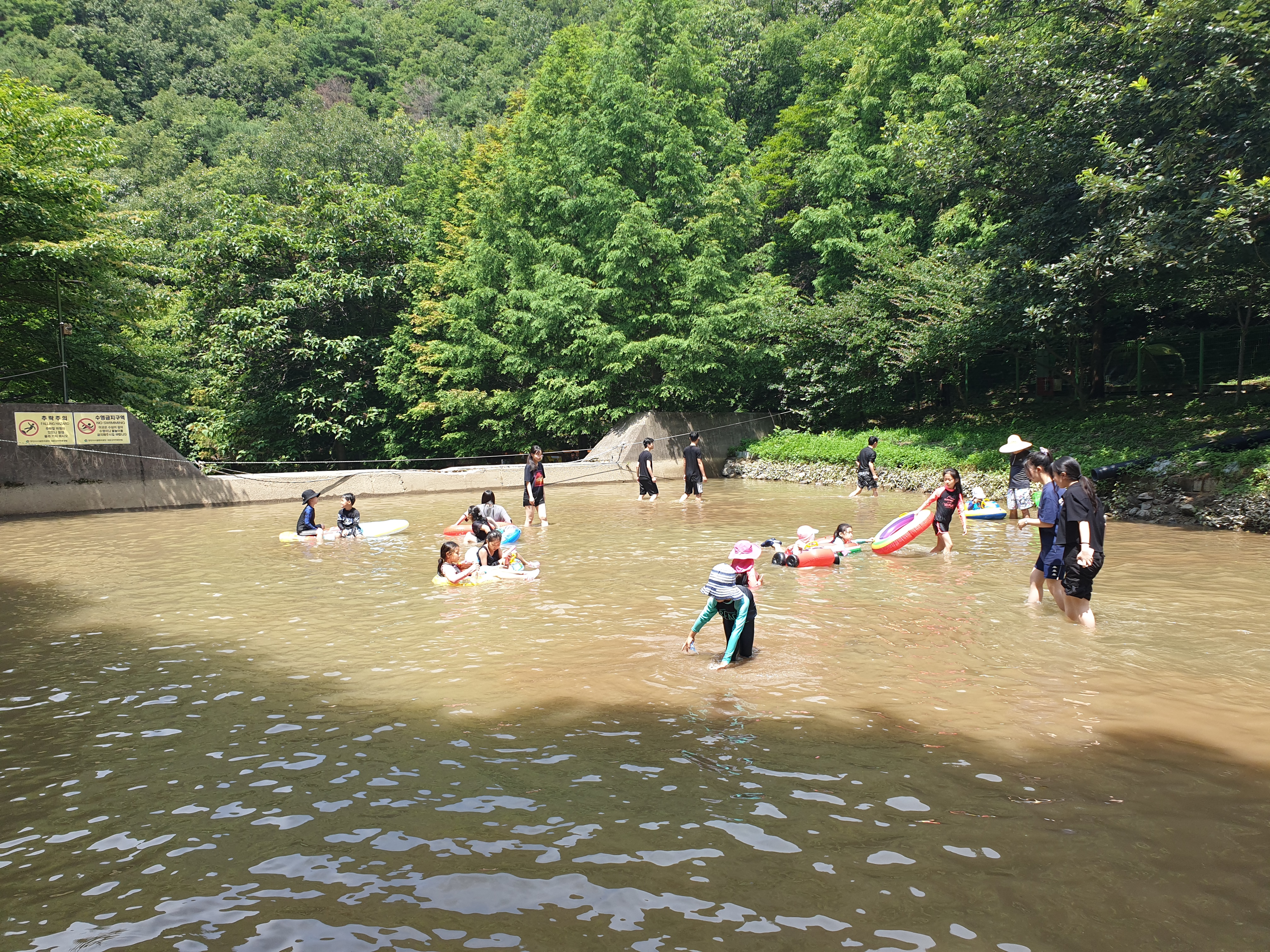 그래도 미취학 아동들은 흙탕물에도 게의치않고 신나게 물놀이를 즐기는군요~