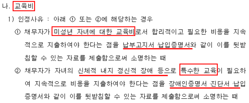 개인회생 추가생계비 (교육비) 인정기준과 한도 - 서울회생법원