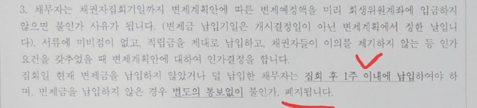 개인회생 집회 참석후 1주일 이내에 변제금 납입하지 않으면 통보없이 인가전 폐지됩니다.